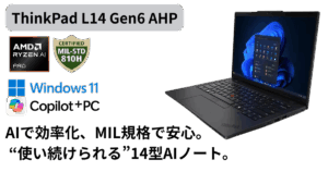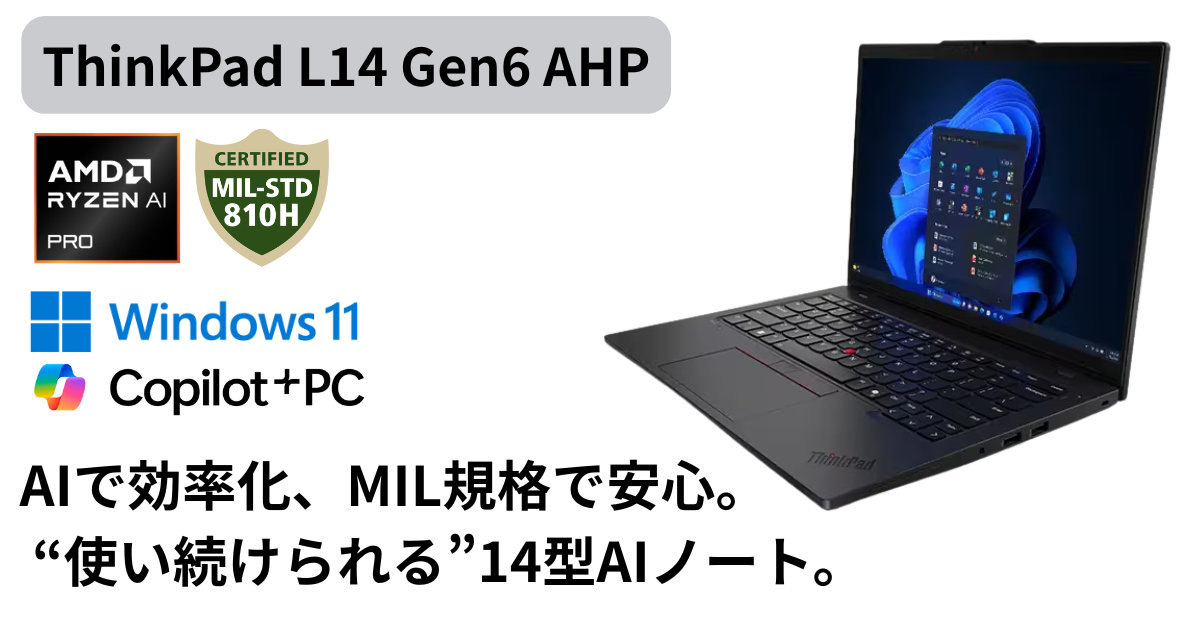 ThinkPad L16 Gen 2 AHP は、16型の広い表示領域と AMD Ryzen™ PRO 搭載の高い処理性能を備えた、ビジネス向けAIノートPCです。テンキー付きキーボードや高いメンテナンス性など、日々の業務効率を底上げするポイントが揃っています。