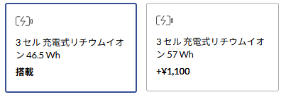 一方、オフィス利用が中心で常に電源にアクセスできる環境では標準の 46.5Wh でも十分で、軽さを重視したい場合はこちらが最適です。