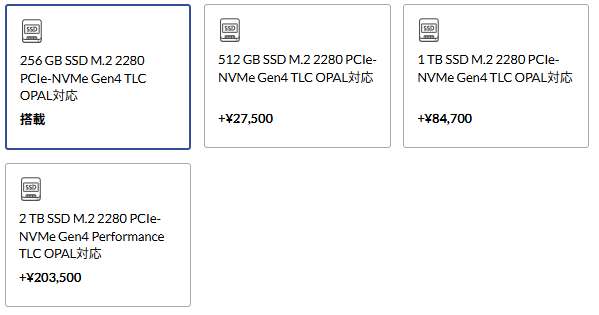 | ストレージ | M.2 2280 PCIe 4.0 ×4(最大2TB)、Opal 2.0対応 |