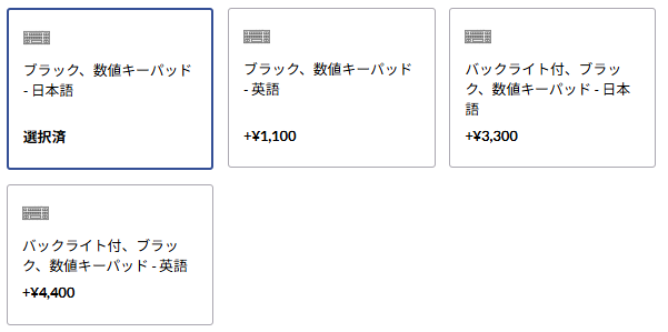 | 外出先・会議室など暗い場所で作業することが多い | バックライト付き 日本語配列(+3,300円) | 視認性が上がり、ミスタイプを防げる |