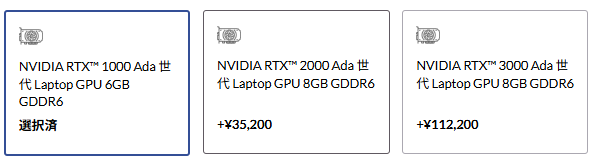 ※薄型筐体のため 3000 Ada でもデスクトップ級性能は出ない点に注意。