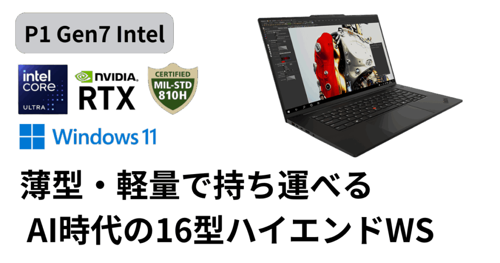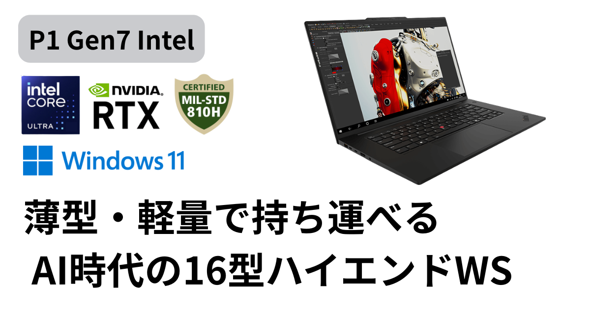 ThinkPad P1 Gen7 は、薄型・軽量ボディにプロ向け性能を凝縮した、16型のハイエンド・モバイルワークステーションです。