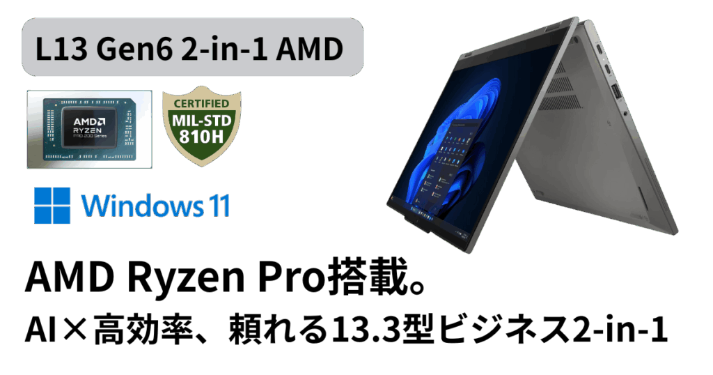 ThinkPad L13 Gen 6 2-in-1(AMD)は、AI時代の働き方にぴったりの軽量2-in-1ノートPCです。