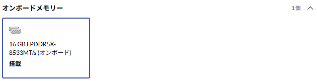 - 現時点では 16GBメモリ構成のみ(オンボード固定)