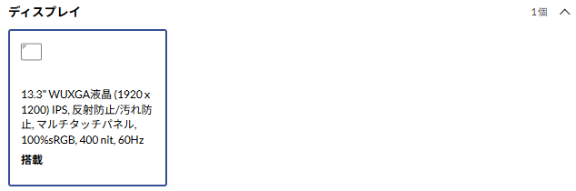 ディスプレイ | 13.3型 WUXGA(1920×1200)IPS タッチ対応(100%sRGB、400nit) |