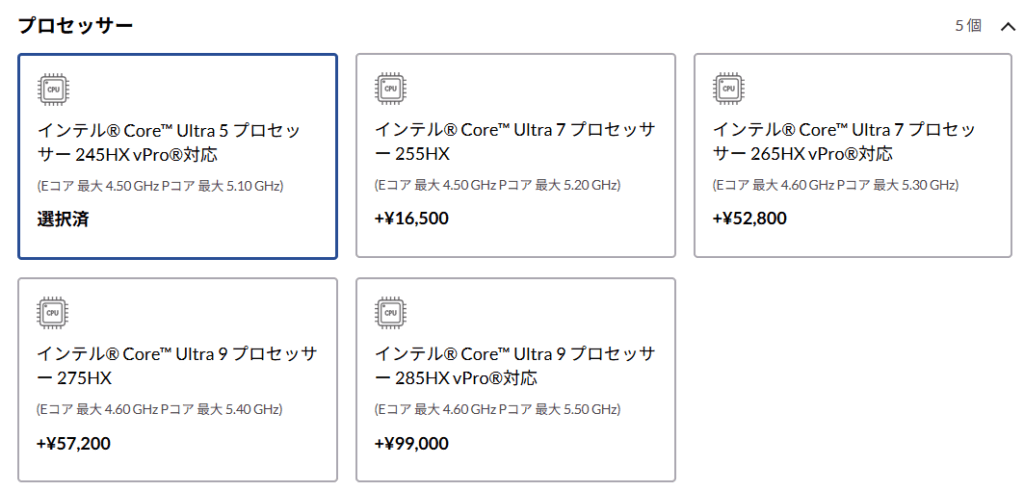 プロセッサーIntel® Core™ Ultra 5 / 7 / 9 HXシリーズ プロセッサー