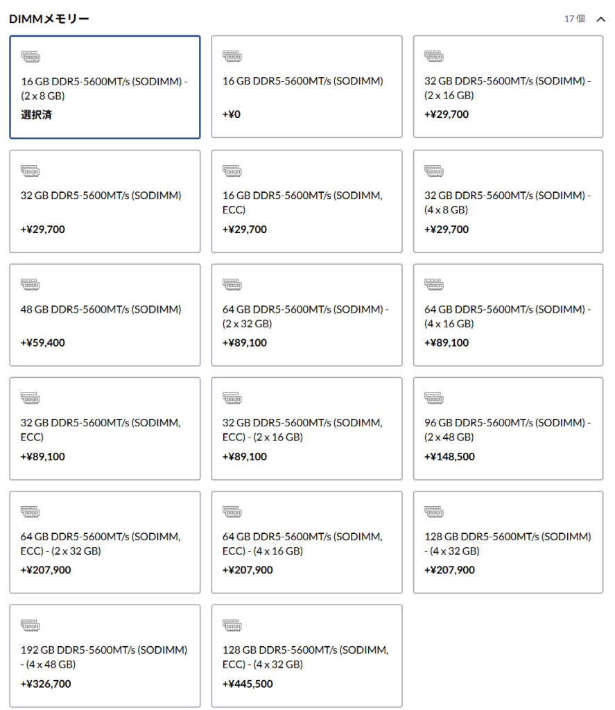 メモリDDR5-5600 ECC:最大128GB(実効4800MHz)DDR5-5600 non-ECC:最大192GB(実効4800MHz)4スロット構成