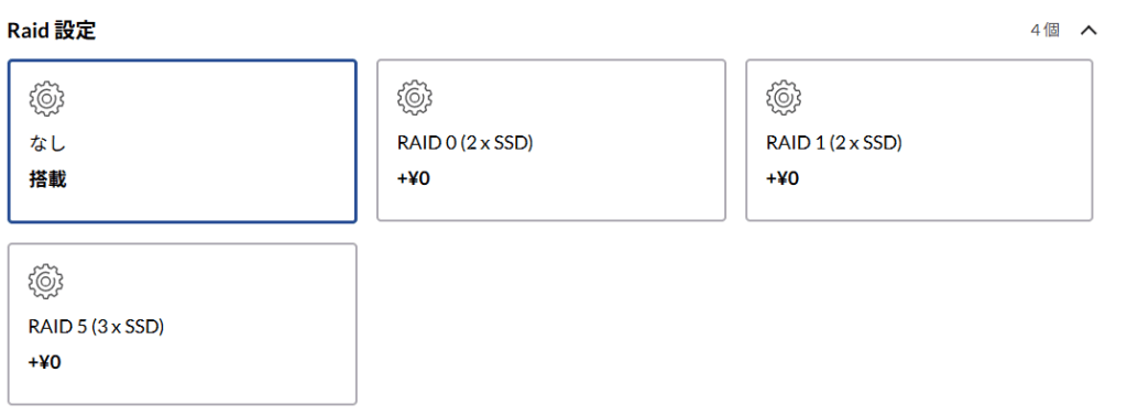 ストレージM.2 PCIe NVMe SSD(RAID 0/1/5対応)