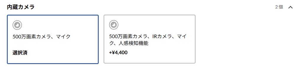 カメラ5.0MP(プライバシーシャッター付き)5.0MP + IR(人感検知/プライバシーシャッター付き)