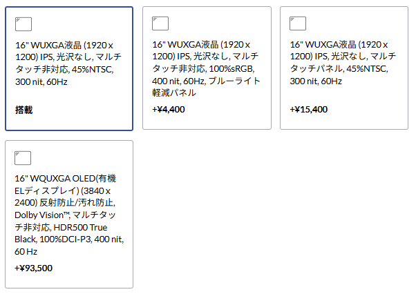 | ディスプレイ | – 16.0型 WUXGA(1920×1200) – WQUXGA OLED(3840×2400) |