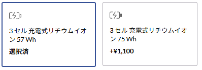 57Whは軽さを優先したい場合に適しており、75Whは稼働時間を重視するユーザーに最適です。価格差はわずか +1,100円 なので、外出が多い方や長時間バッテリーを求める方は75Whを選ぶメリットが大きい構成です。