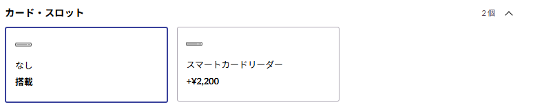 一方、個人ユーザーや一般的なビジネス利用では、外付けのUSBカードリーダーで代用できるため、内蔵にこだわる必要はありません。