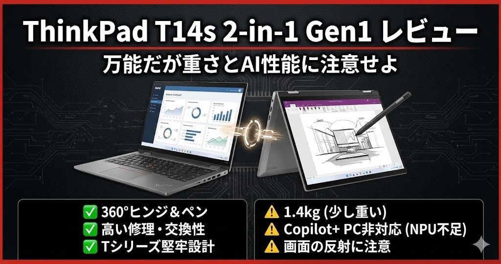 ThinkPad T14s 2-in-1 Gen1は、「手堅い互換性」と「変幻自在のスタイル」を両立させた、ビジネスの現場で最も頼りになる一台です。