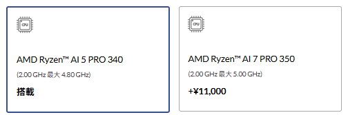 1. CPU: Ryzen 7 PRO 350(+1万円でグラフィック性能が大幅UP)