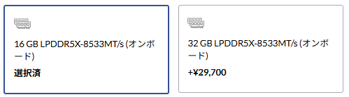 ※最大32GB、スロットなし(増設不可)