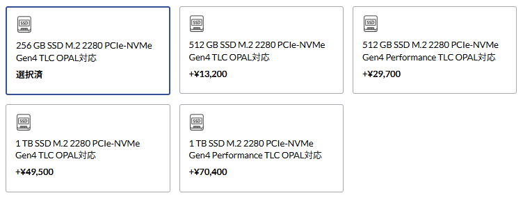 ストレージ256GB / 512GB / 1TB SSD