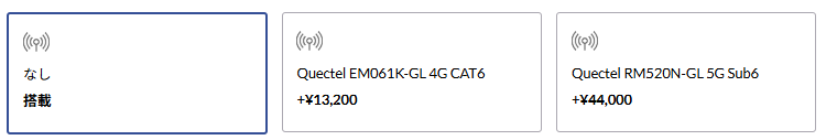 ※ワイヤレスWAN (4G LTE/5G Sub6) 選択可
