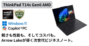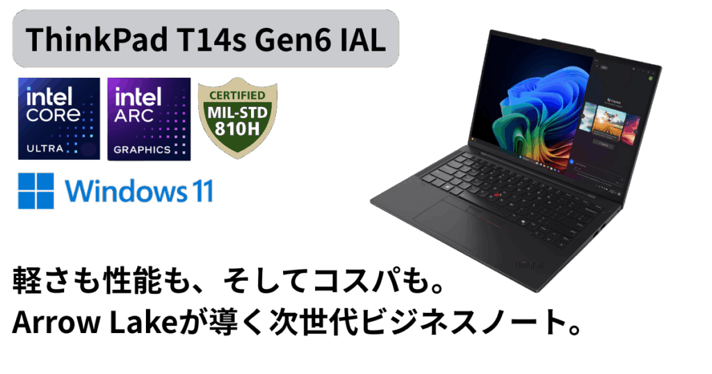 Arrow Lake世代のThinkPad T14s Gen6 IALは、性能・携帯性・コストパフォーマンスのバランスに優れたAIビジネスノートです。