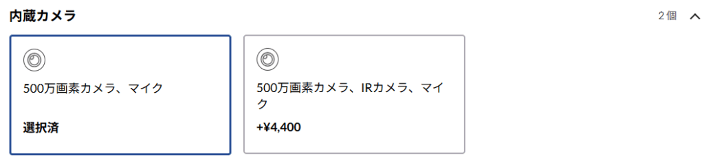 +4,400円で選べる「IRカメラ付き」構成は、顔認証ログイン(Windows Hello)に対応しています。センサーが赤外線(IR)を利用して顔を立体的に認識するため、マスク着用時でもログインしやすく、セキュリティ性も高いのが特長です。