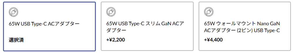 現在、選べるアダプターは以下の3種類です。