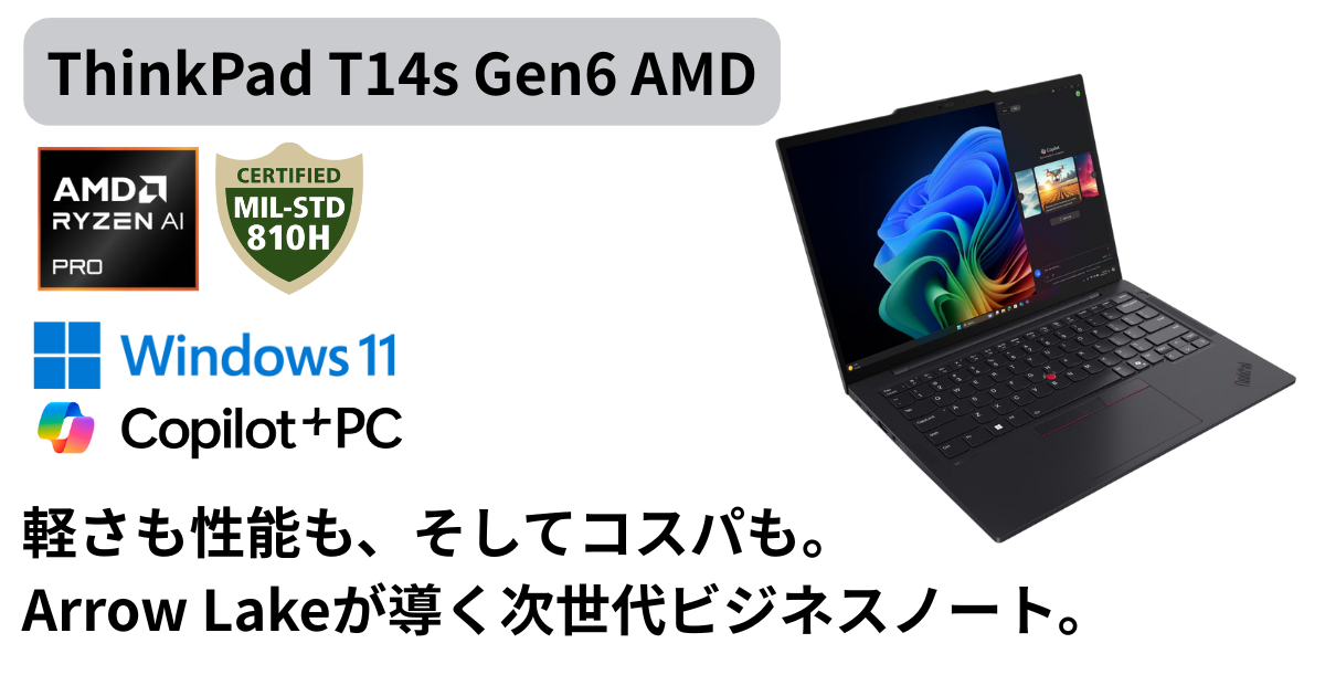 Arrow Lake世代のThinkPad T14s Gen6 IALは、性能・携帯性・コストパフォーマンスのバランスに優れたAIビジネスノートです。