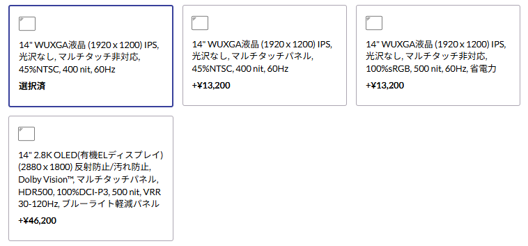 ・WUXGA IPS(1920×1200)非光沢/省電力/Privacy Guard/マルチタッチ対応など複数構成