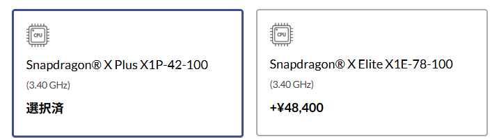 | プロセッサー | Snapdragon® X Elite X1E-78-100Snapdragon® X Plus X1P-42-100 |
