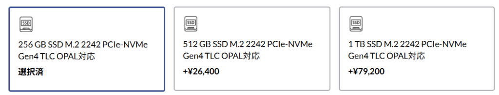| ストレージ | 256GB / 512GB / 1TB SSD (M.2 2242/PCIe® 4.0 x4) |
