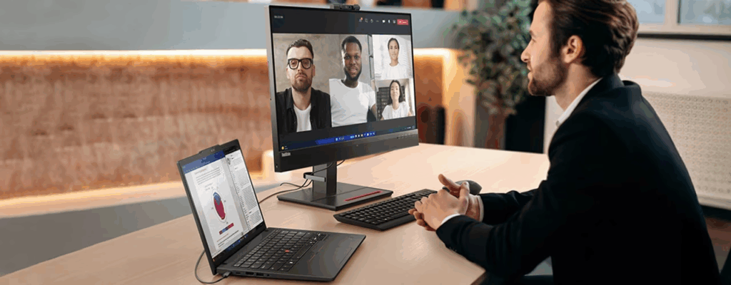 ビデオ変換アダプターは、USB Type-CポートをDisplayPortに変換するための外付けケーブルです。主に外部ディスプレイやプロジェクターへの映像出力用途で使用しますが、T14 Gen6 AMDはもともとHDMIポートを標準装備しているため、通常の会議やプレゼン環境では十分対応可能です。
