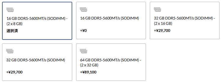 | メモリー | 8GB/16GB/32GB(最大64GB)DDR5-5600 |