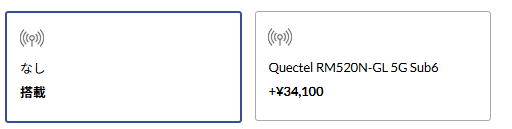 | WWAN(オプション) | 4G LTE/5G Sub6対応 |