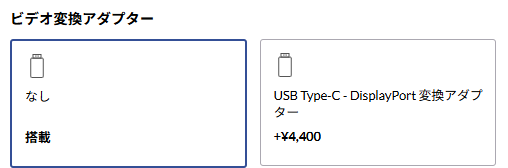 外出先での会議や複数ディスプレイ運用を想定している方、特に4KモニターをDisplayPortで接続したいユーザーのみ、+4,400円の追加で選択しておくと安心です。