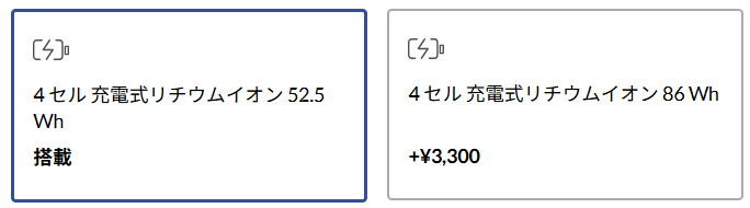 | バッテリー | 4セル 52.5Wh/86Wh |