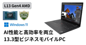 X13 Gen 5は、米国防総省の耐久テスト基準「MIL-STD-810H」に合格。温度変化や振動、湿度、衝撃など、過酷な環境でも安定して動作する高い耐久性を備えています。長期使用でも信頼できるビジネスツールです。