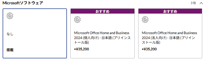 | Microsoft Office Home and Business 2024(個人向け) | Word/Excel/PowerPoint/Outlookを収録 | +¥35,200 |