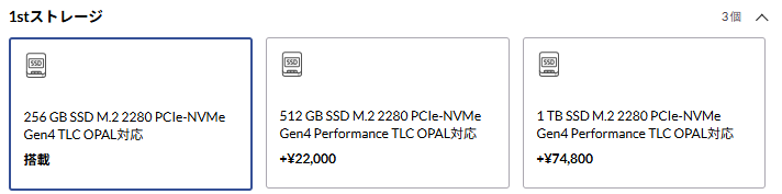 | 1TB SSD | M.2 PCIe-NVMe Gen4 Performance TLC OPAL対応 | +¥74,800 |