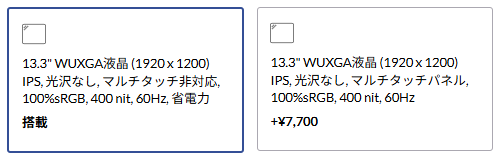 ディスプレイ13.3型 WUXGA IPS液晶 (1920 x 1200, 16:10)