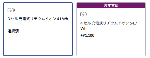 基本的には多くの人に推奨される「54.7Wh(+1,100円)」がおすすめですが、スタイルに応じて決めましょう。