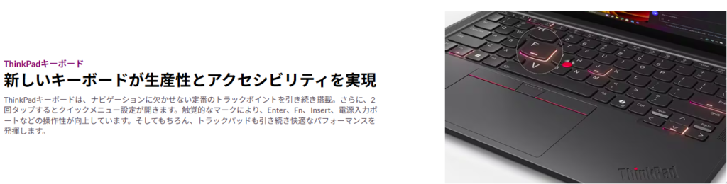 • 「とにかく打ちやすい」「15年ぶりにThinkPadに戻ってきたが感触が好み」と、入力デバイスとしての信頼性は健在です。
