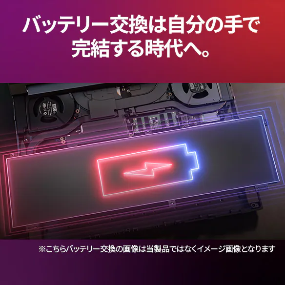また特筆すべき点として、本機は薄型設計でありながら、バッテリー交換が自分の手で完結する設計になっています。将来的にバッテリーが劣化しても、メーカー修理に出すことなく自分で交換して長く使い続けることが可能です。