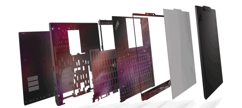 これまでの薄型モデルは、キーボード一つ替えるのにもマザーボードを外す大手術が必要でした。しかし、新型は構造が「サンドイッチ状」に一新されています。